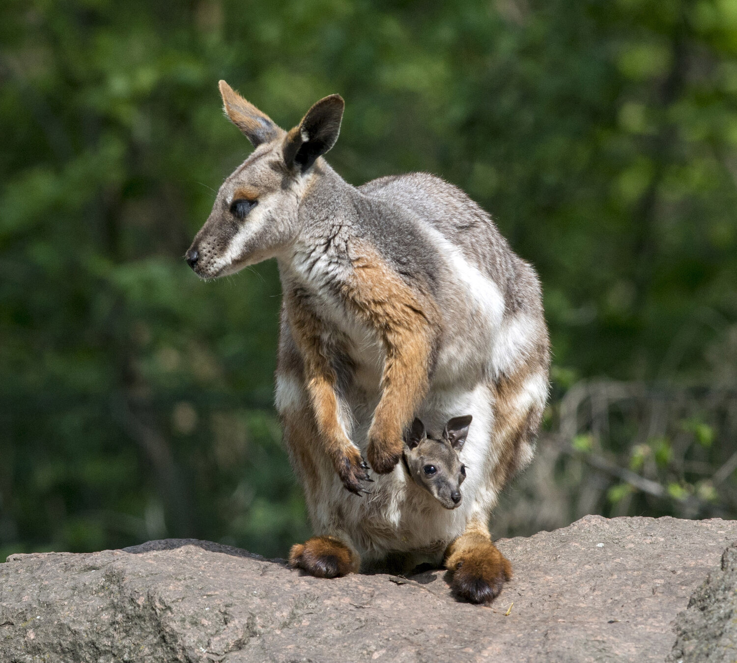 Das Kindchenschema lässt grüßen! Mit ihrer neugierigen, tollpatschigen Art und ihrem putzigen Aussehen erobern die Tiere im Miniaturformat regelmäßig und in Windes Eile die Herzen der Besucher. Die ausgewachsenen Tier-Mütter geraten dabei schnell mal in den Hintergrund. Doch ist der entzückende Nachwuchs in erster Linie ihnen zu verdanken. Die Beziehung zwischen Mutter und Kind stellt auch im Tierreich eine ganz besondere Verbindung dar. Obwohl die Jungtier-Aufzucht teilweise unterschiedlicher nicht sein könnte, so vereint sie doch alle eines: Tier-Mütter umsorgen ihren Nachwuchs mit viel Liebe! Dieses bewundernswerte Schauspiel der Natur lässt sich aktuell im Tierpark Berlin besonders gut beobachten. So stellte sich in den vergangenen Wochen bei vielen tierischen Bewohnern Nachwuchs ein, der nun vor den Augen der Besucher im frühlingshaften Tierpark heranwächst. Das am 21. April 2019 geborene Przewalski-Fohlen Tessa galoppiert bereits munter über die Anlage, während Mutter Tibeta ihr nicht von der Seite weicht. Bei Familie Baumstachler ist der Nachwuchs zwar schon von Geburt an vergleichsweise selbstständig unterwegs, doch sucht das Kleine auch noch regelmäßig Mutter Annis "stachelige" Nähe. Seit Ende April schaut regelmäßig ein junges Felsenkänguru aus Mutter Marinnes Beutel.