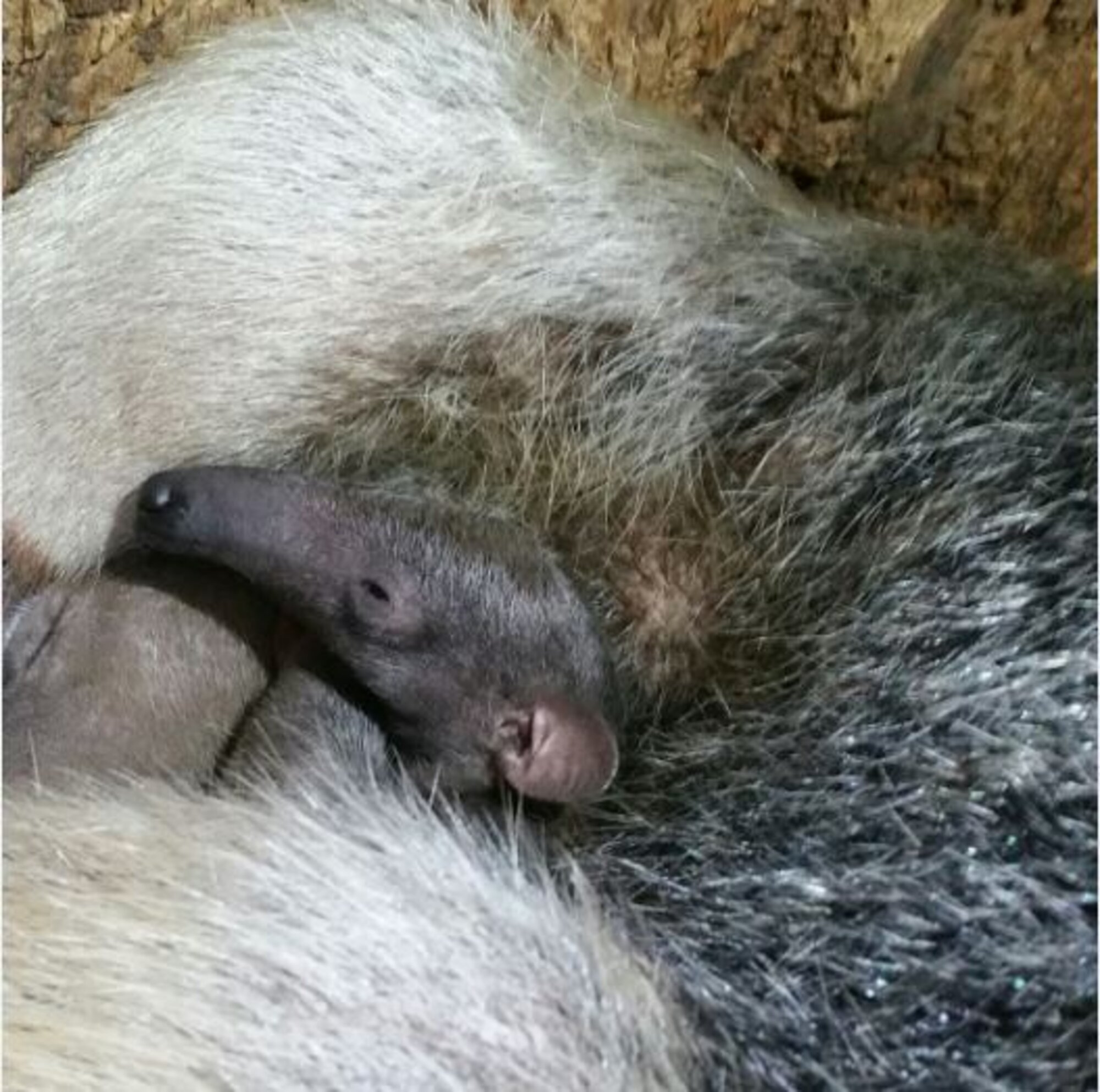 Ein langes Näschen schiebt sich vorsichtig aus dem dichten Fell von Ameisenbärin Anna und lugt nur für wenige Sekunden hervor, bevor es sich schnell wieder in die Geborgenheit von Mamas flauschigen Armen zurückzieht. Im Affenhaus des Tierpark Berlin ereignete sich am 4. April 2018 eine kleine Sensation: Berlins erstes Langschwanz-Tamandua Jungtier kam hier zur Welt – darüber hinaus ist es das erste in ganz Deutschland. „Diese Unterart der Ameisenbären ist in Zoologischen Gärten sehr selten“, erklärt Zoo- und Tierparkdirektor Dr. Andreas Knieriem. „Wir freuen uns sehr über diesen besonderen Neuzugang. Noch hütet die Mutter ihren Nachwuchs wie einen ganz besonderen Schatz. Besucher müssen Glück und Geduld mitbringen, um das Kleine zu entdecken.“