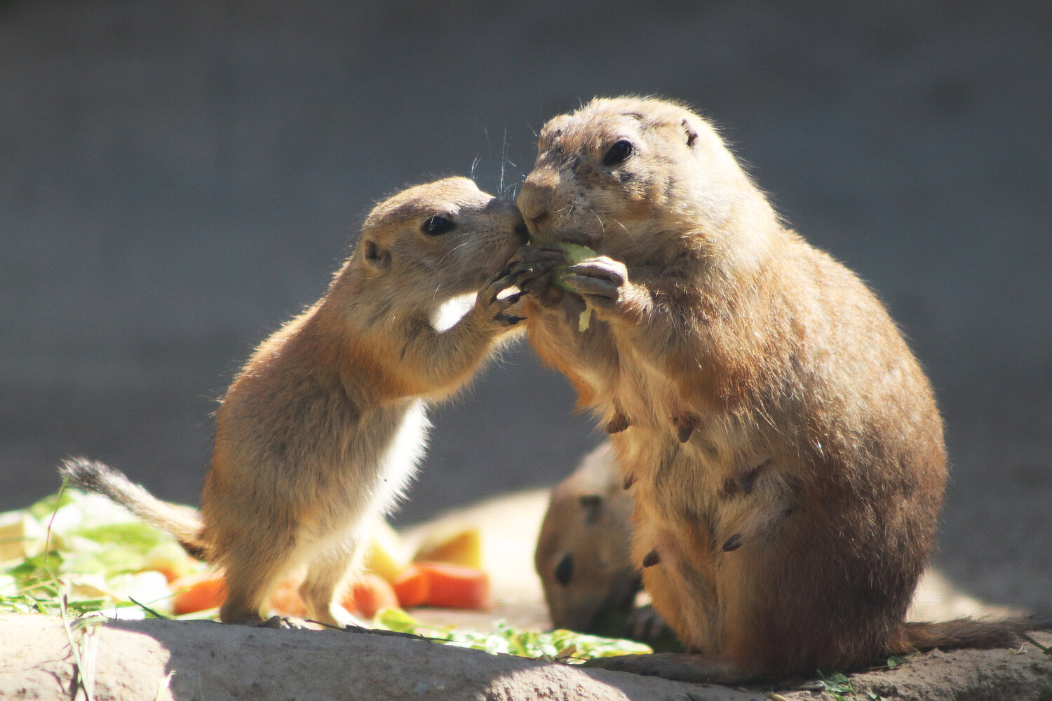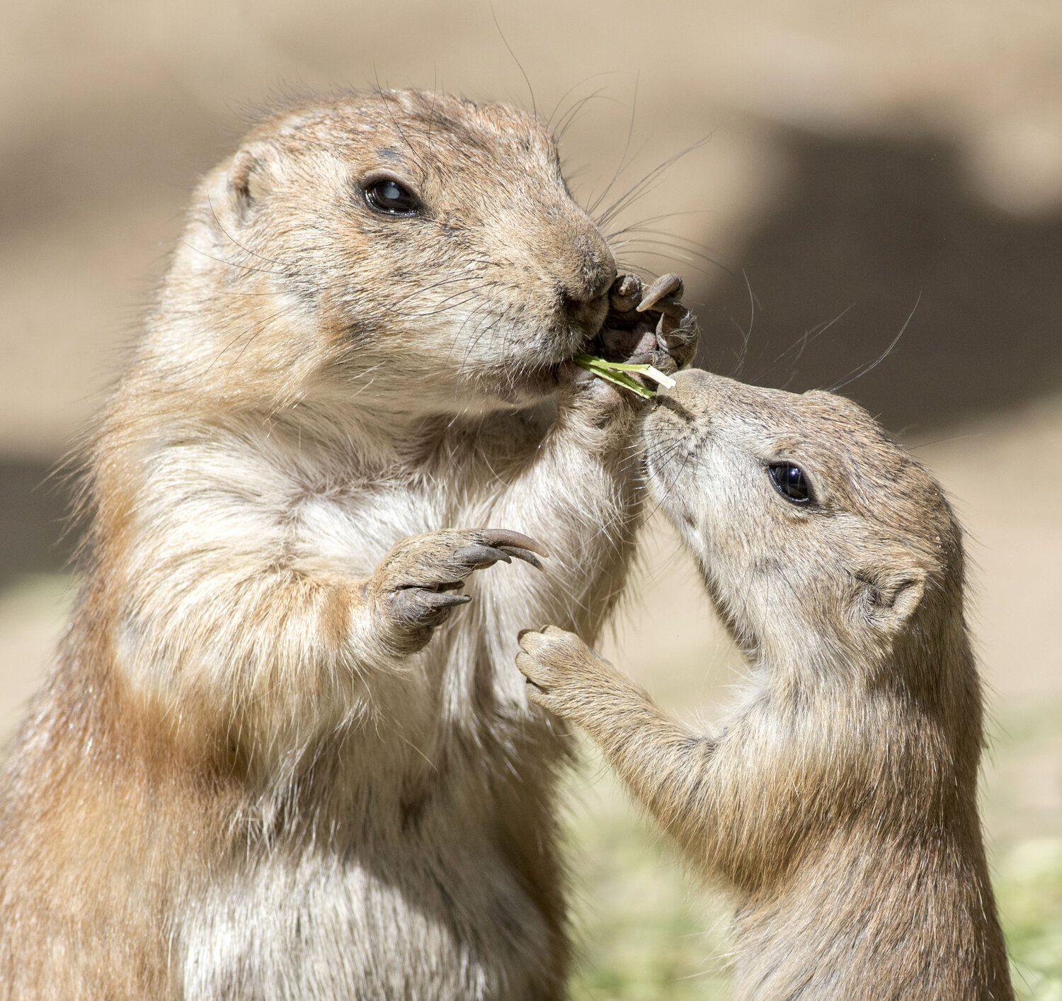 Unterdessen wird im Tierpark fleißig der Sonnengruß geübt: Auch die im Mai geborenen Präriehunde genießen kuschelnd, sonnenbadend und heumümmelnd den Frühsommer. Die putzigen kleinen Sonnenanbeter unterhalten die verzückten Besucher mit tollpatschigen Yogaversuchen. Dabei sind sie nur wenige Zentimeter von ihnen entfernt und es fehlte nicht viel, da würden Sie ihre Gäste auch mit einem liebevollen Nasenstupser begrüßen. In Zeiten strenger Hygiene- und Abstandsregeln natürlich fehlt am Platz - zum Glück sind hier Mensch und Tier durch eine Glasscheibe voneinander getrennt. So können Besucher der Präriehund-Familie auch jetzt ganz nahekommen. Die Erdhörnchen sind auch gegenüber ihren Artgenossen alles andere als zurückhaltend: Mitglieder einer Gruppe begrüßen sich innig mit einer Art Zahn- und Zungenkuss.