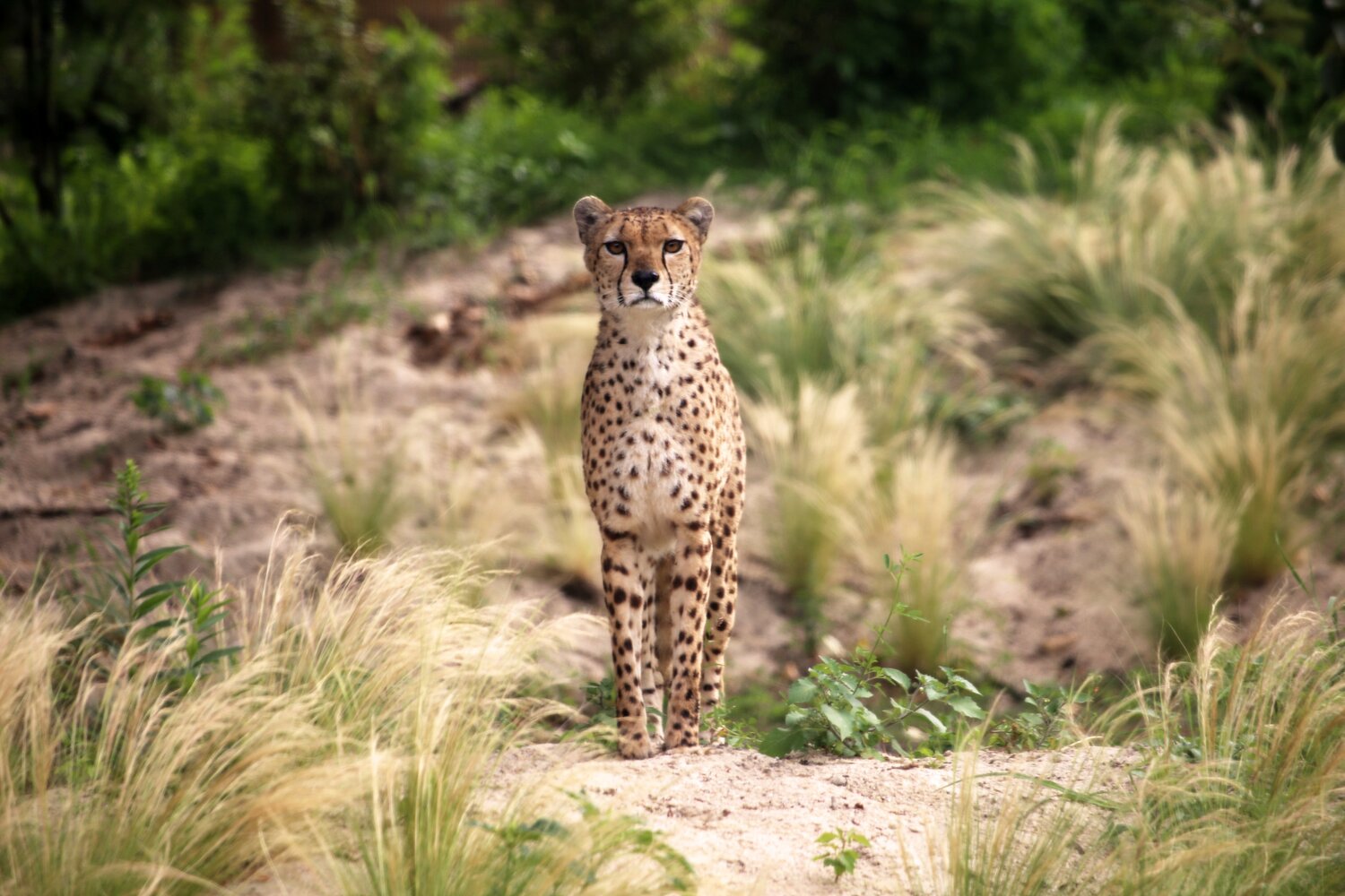 Majestätisch sitzt Gepard Rufaa auf einer sandigen Anhöhe und blickt über das Grasland. Kaum steht er auf um einen nächsten Streifzug zu beginnen, kommt sein athletischer Körper erst richtig zur Geltung. Beeindruckend grazil und gleichzeitig kraftvoll schreitet er durch das hohe Gras. Und das schon bald in Gesellschaft: Zwei Geparden-Brüder zogen kürzlich an die Spree und sollen zukünftig gemeinsam mit Rufaa die Geparden-Savanne des Tierpark Berlin bewohnen.