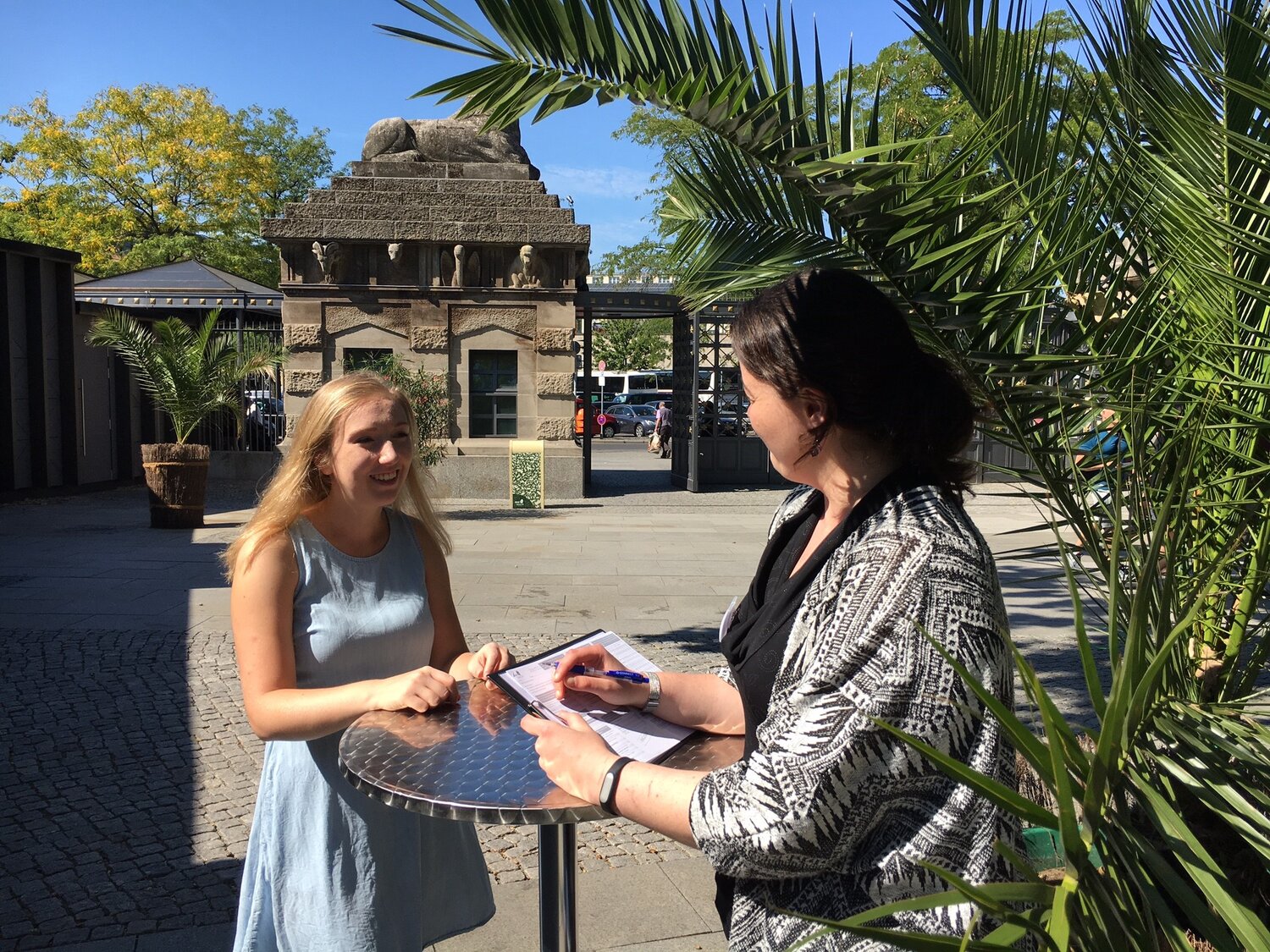 Die Besucherumfrage wird seit 2014 zum 3. Mal in diesem Jahr vom 28.08. bis 10.09.2017 in Zoo und Tierpark Berlin durchgeführt. Jeweils eine Woche in den Ferien und eine Woche außerhalb der Ferien positionieren sich die Interviewer der Agentur für Marktforschung und Beratung aserto im Zoo an den Eingängen Elefantentor und Löwentor, im Tierpark werden am Bärenschaufenster und am Eingang Schloss Friedrichsfelde die Kugelschreiber gezückt. Insgesamt werden ca. 2.000 Interviews geführt.