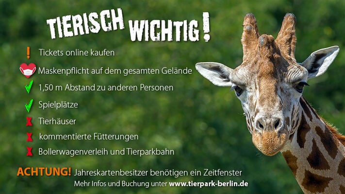 - Masken-Pflicht (ab 6 Jahren) auf gesamten Zoo- und Tierpark-Gelände sowie vor den Eingängen