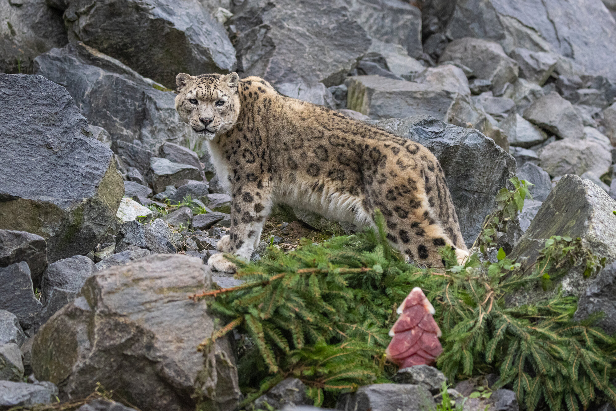 Unsere Schneeleoparden Batar und Layla verbringen Heiligabend in vertrauter Zweisamkeit.