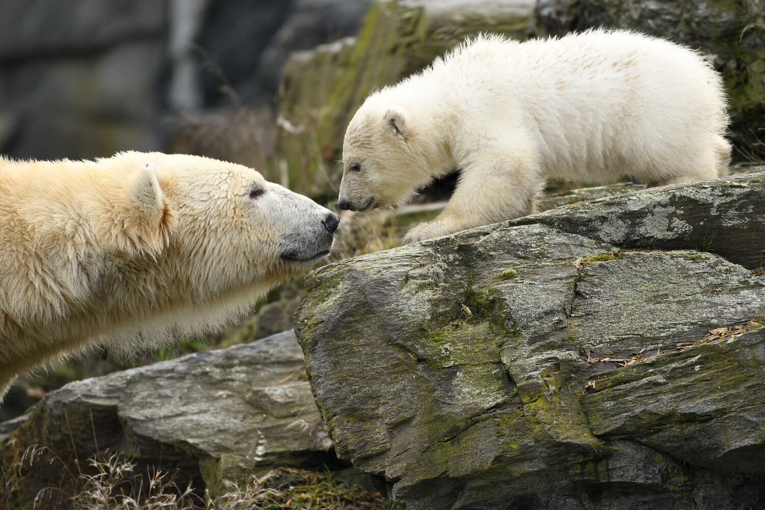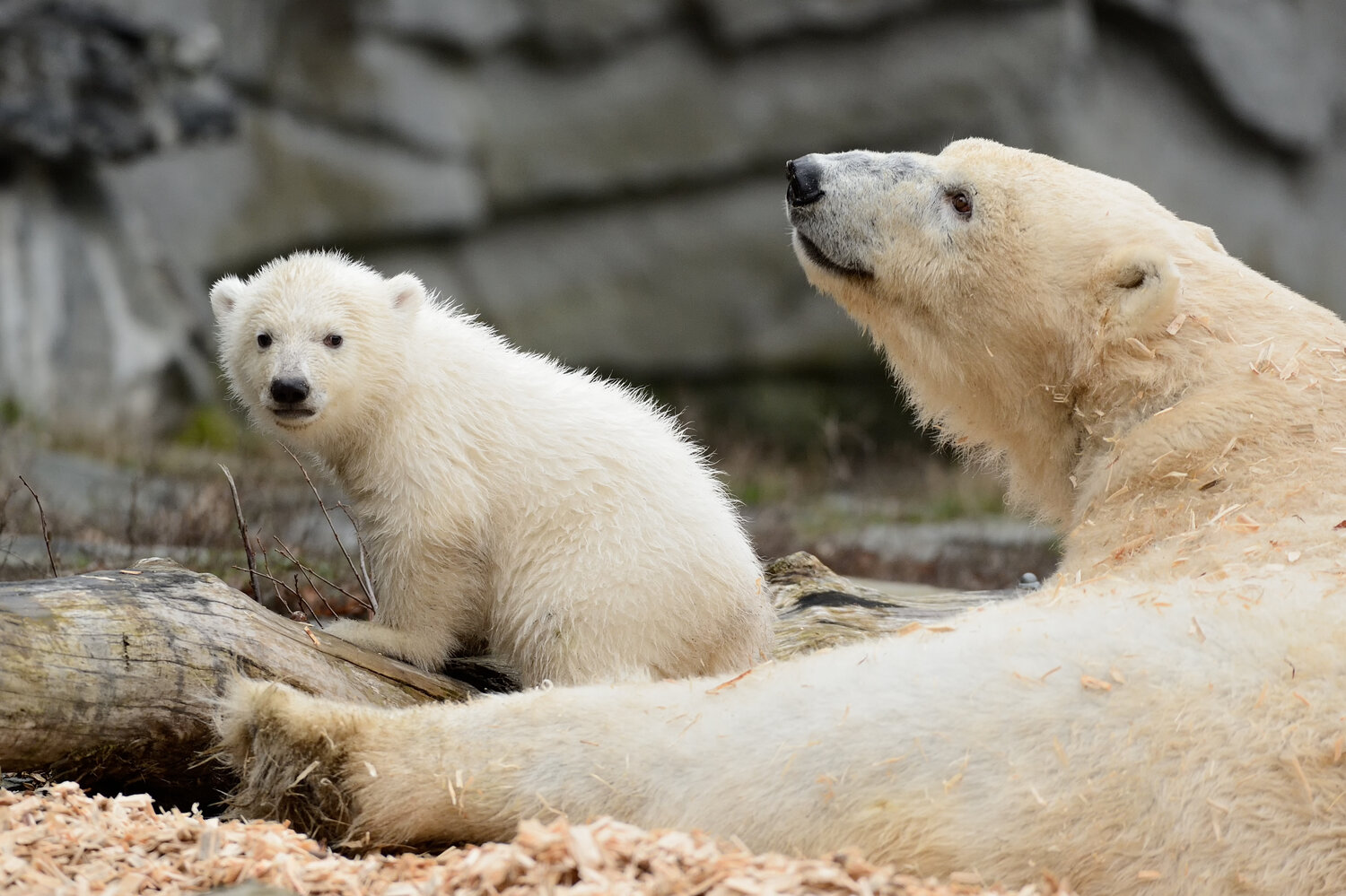 Ein großer weißer Bär schaut aus dem felsigen Höhleneingang und kommt gemächlich nach draußen, kurz später flitzt ein kleines weißes Fellknäul mit Knopfaugen hinterher – monatelang fieberte ganz Deutschland diesem Augenblick entgegen. Heute Vormittag war es endlich soweit: Eisbärin Tonja (9) unternahm zusammen mit ihrem Nachwuchs den ersten großen Ausflug auf die Außenanlage.