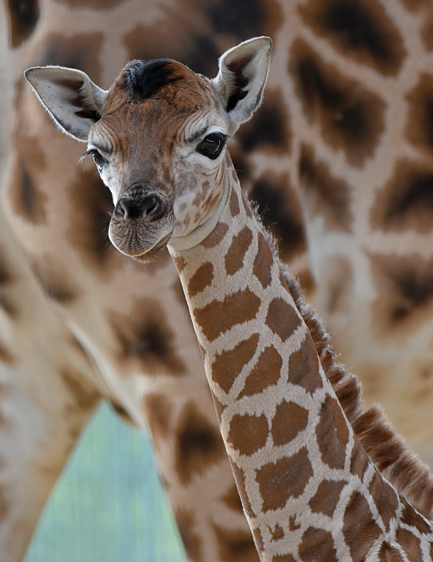 Etwas unsicher reckt der kleine Giraffenbulle seinen grazilen Hals, bleibt dabei aber immer die Nähe seiner Mutter. Rund 1,5 Jahre nach der Geburt ihres ersten Nachwuchses Ella brachte Giraffenkuh Amalka (6 Jahre) nach 15 Monaten Tragzeit am 5. Juni 2020 eine kleine männliche Giraffe zur Welt.