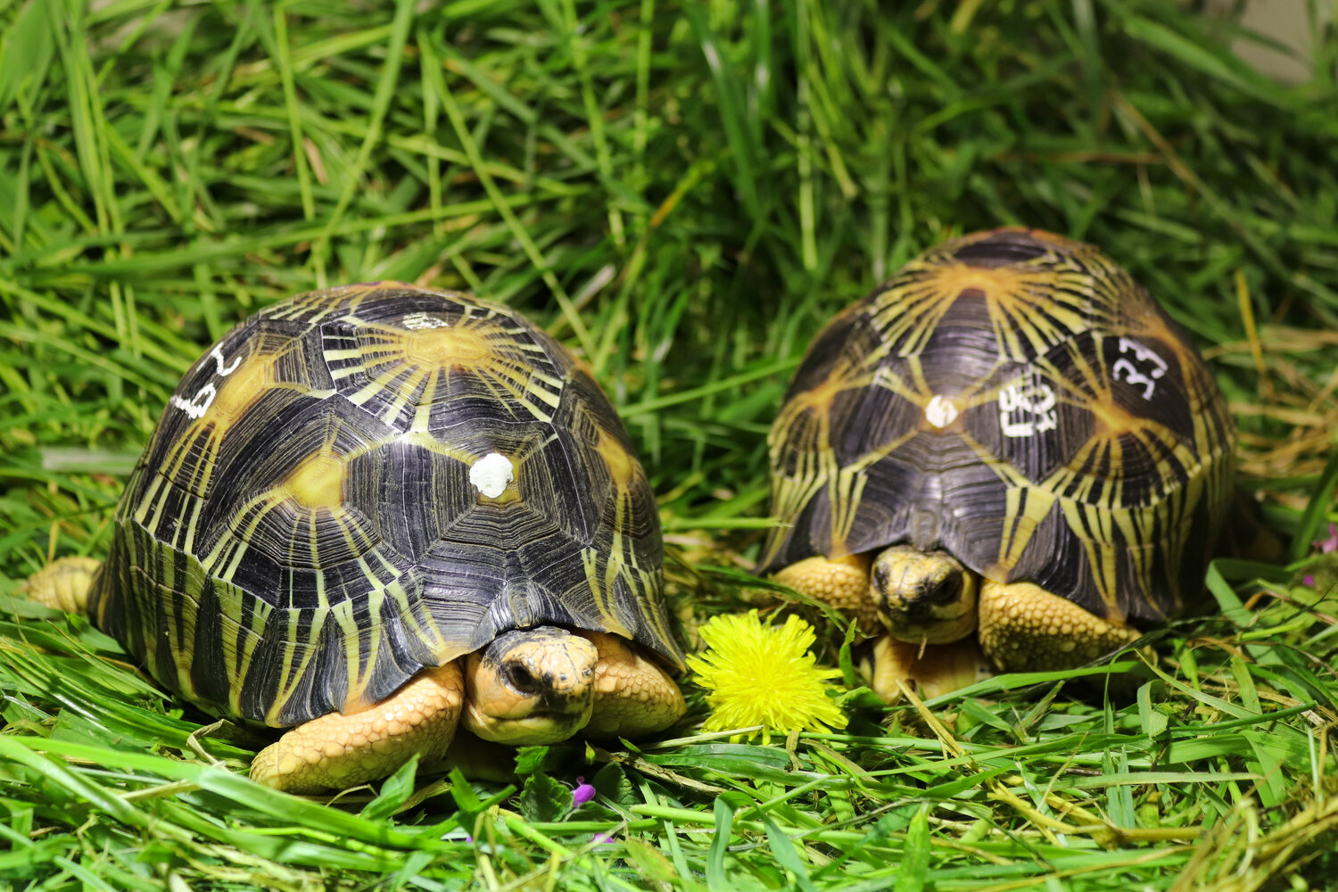 Die Flugreise nach Deutschland haben die Tiere glücklicherweise gut überstanden. „Nach einer Portion frischer Wildkräuter gab es für die jungen Strahlenschildkröten ein Bad im lauwarmem Wasser. Damit sich die jungen Tiere auch bei der hiesigen Luftfeuchtigkeit gesund entwickeln können, gehört dies nun zu ihrem täglichen Ritual“, erklärt Tierpark-Kurator Markus Klamt. Woher die Tiere genau stammen und wann sie geschlüpft sind, konnte nicht ermittelt werden. In den ausgestellten Dokumenten werden sie auf ein Alter zwischen zwei und zehn Jahren geschätzt. Ihren Namen verdankt die Strahlenschildkröte ihrer auffälligen Musterung auf dem Panzer, markante gelbe Linien verlaufen strahlenförmig auf dem hoch gewölbten Panzer nach außen. Durch die Musterung sind die Tiere im Gebüsch optimal getarnt. Eine ausgewachsene Strahlenschildkröte bringt bis zu 16 kg auf die Waage und kann 190 Jahre alt werden. Beheimatet sind Strahlenschildkröten ausschließlich in Madagaskar, hier sind sie vor allem in Trockenwäldern sowie Dornbuschsavannen im Süden des Landes zu finden.