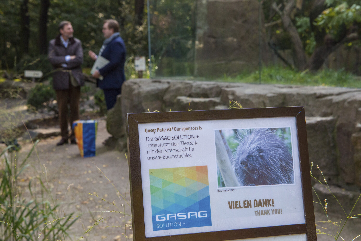 Die GASAG Solution Plus hat auch die Patenschaft für die beiden stolzen Baumstachler-Eltern Anni und Oskar übernommen. „Wir freuen uns sehr, dass wir nun die Paten einer ganzen Baumstachler-Familie sind“, sagt GSP-Geschäftsführer und Sprecher Frank Mattat, „Die Patenschaft ist auch Ausdruck unserer langjährigen erfolgreichen Partnerschaft mit dem Tierpark“. Das Unternehmen mit seinem Hauptsitz in Berlin unterstützt den Tierpark Berlin schon seit längerem. Auch die Patenschaft für die Steinböcke hat die GSP bereits übernommen.