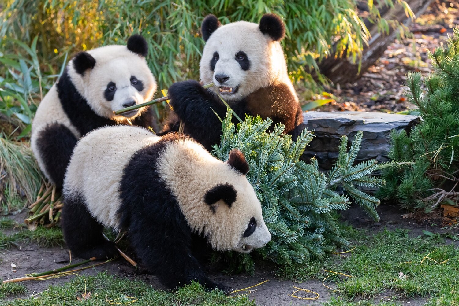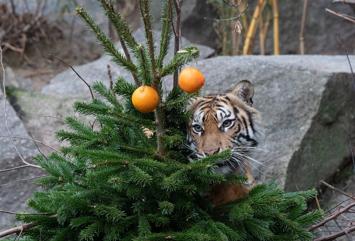 Herzhafte Pandakekse für Pit und Paule, ein im Grünzeug verteilter Festtagsschmaus für die Löwengeschwister und ein Weihnachtsbaum auf Tauchstation für die Eisbären Tonja und Hertha. Zum Abschluss dieses sehr speziellen Jahres haben sich die Tierpfleger noch mal richtig ins Zeug gelegt und die Tiere in Zoo und Tierpark mit weihnachtlichen Überraschungen bedacht.