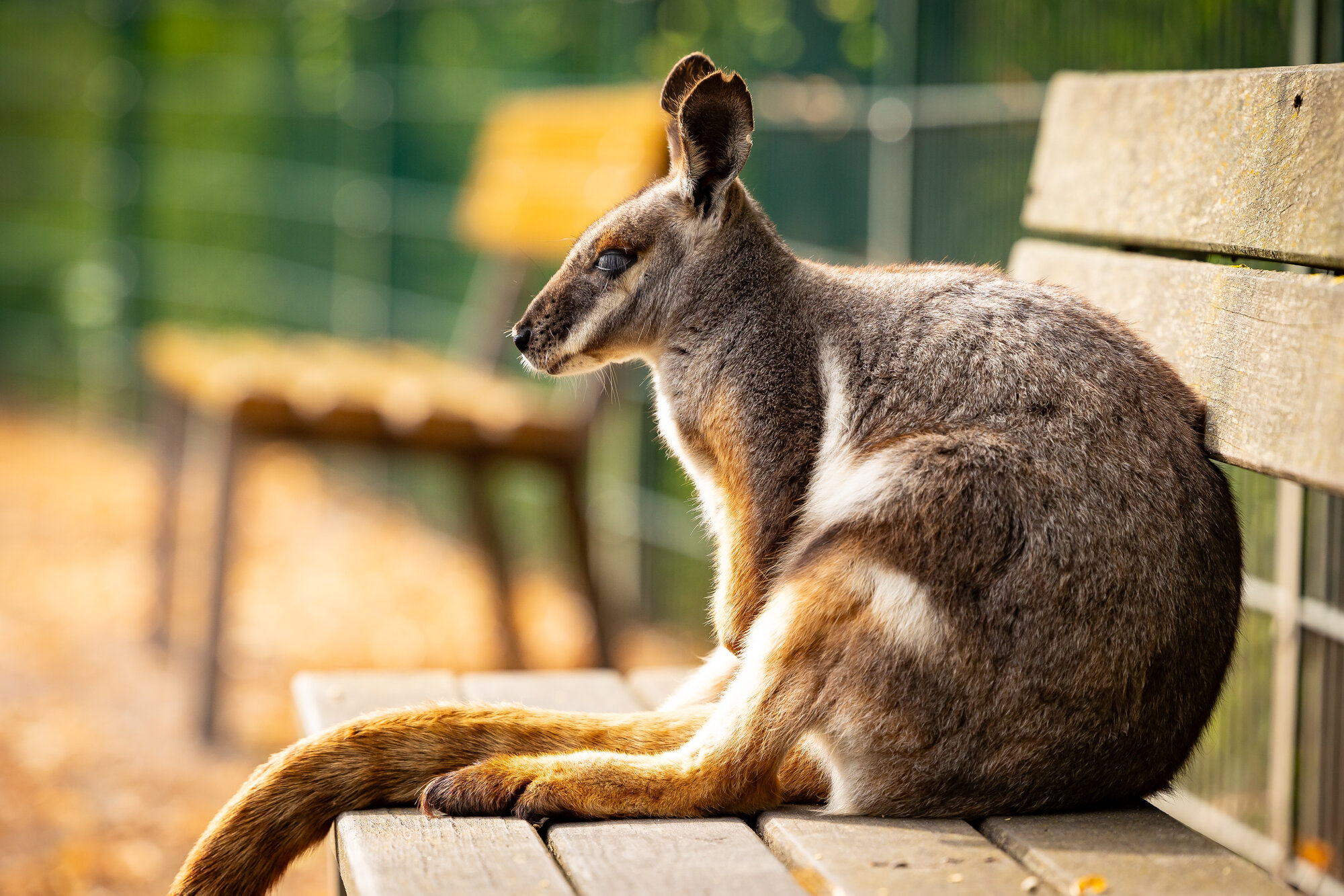 Schauen Sie doch mal bei unseren Gelbfuß-Felsenkängurus vorbei: Hier können Sie in Ruhe entspannen und dabei die Tiere aus nächster Nähe beobachten.