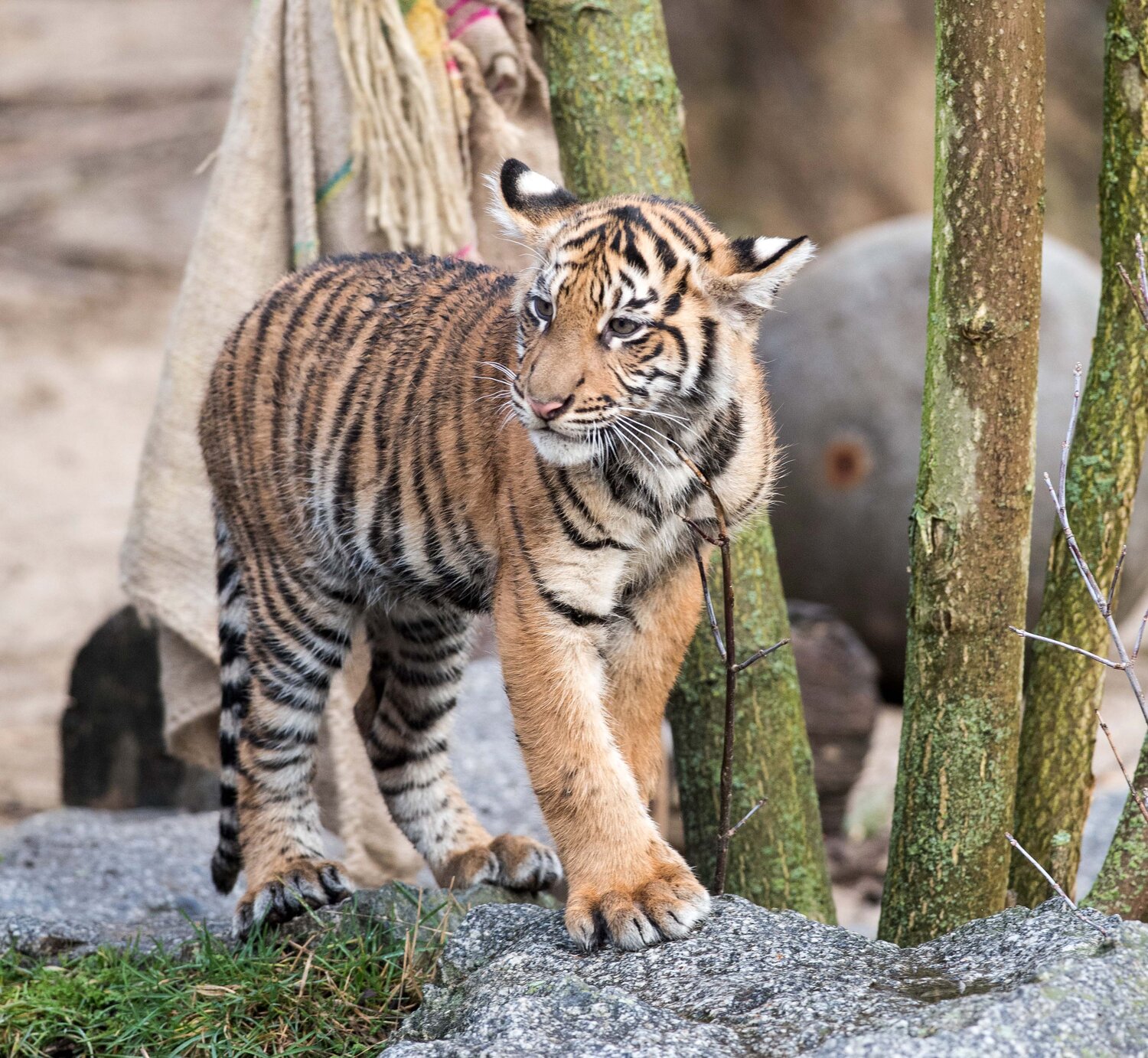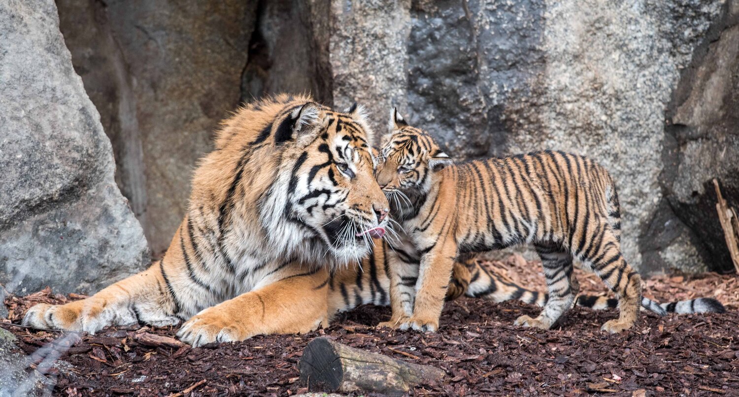 Schon gewusst? Charakteristisch für Sumatra-Tiger ist neben ihrem eng gestreiften Fell der markante Backenbart – den man langsam auch bei unseren Jungtieren erahnen kann.