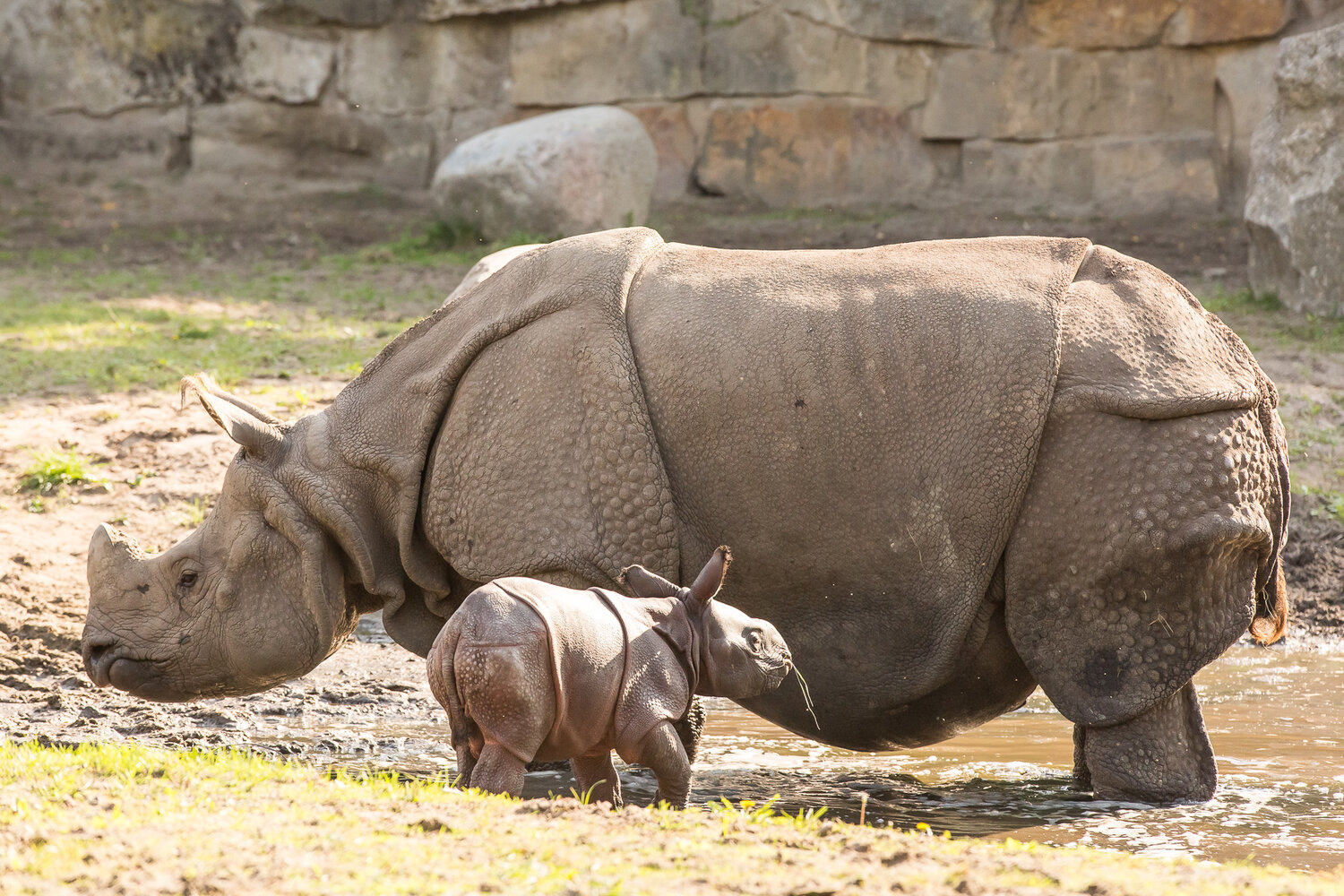 "We are very happy that Betty and her offspring are doing well. The little one steadily suckles, rampages around in his surroundings and even catches some rest every now and again! Everything is going well, Betty has fully risen to her role of mother and we really don't need any medical intervention", reports Zoo Director Dr. Andreas Knieriem concerning the Indian rhinoceros offspring.