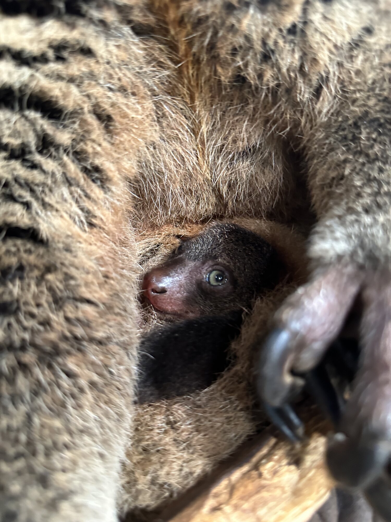 The new baby is a sign of hope for the species and a milestone in the Tierpark’s mission to protect and conserve endangered species. Tierpark veterinarian Anja Hantschmann has been the coordinator for this species within the European Endangered Species Programme since 2023 and is naturally excited about the new arrival: “The bear cuscus is endemic to the Indonesian island of Sulawesi and its offshore islands. It is threatened by the destruction of its forest home, but also by poaching. Although Indonesian law protects the species, its numbers in the wild are decreasing. The birth of this juvenile is therefore an important step in ensuring the survival of the rare species.” Mother and child bear cuscuses stay together for about eight months until the joey finally begins to explore independently. The Tierpark’s female Duza and male Garrett already produced a joey last year, who was named Dolly. She is now weaned from her mother but is still living at Tierpark Berlin.