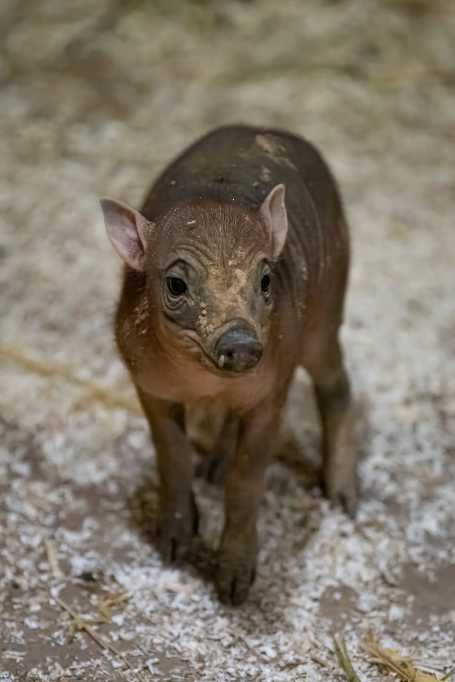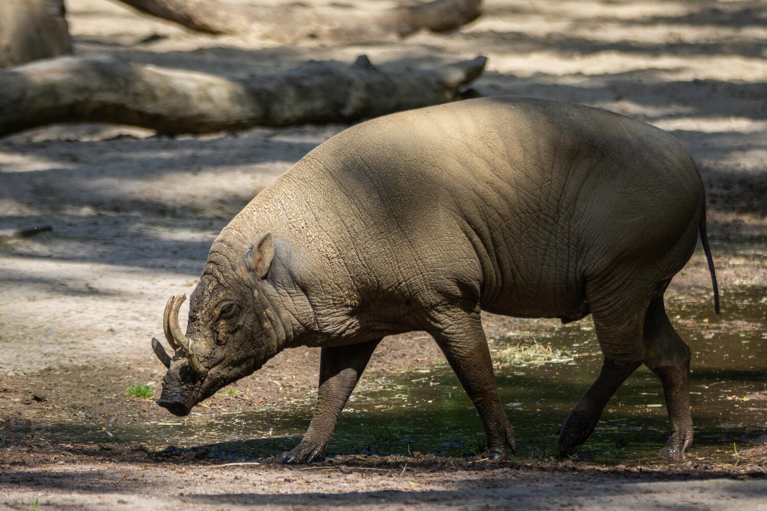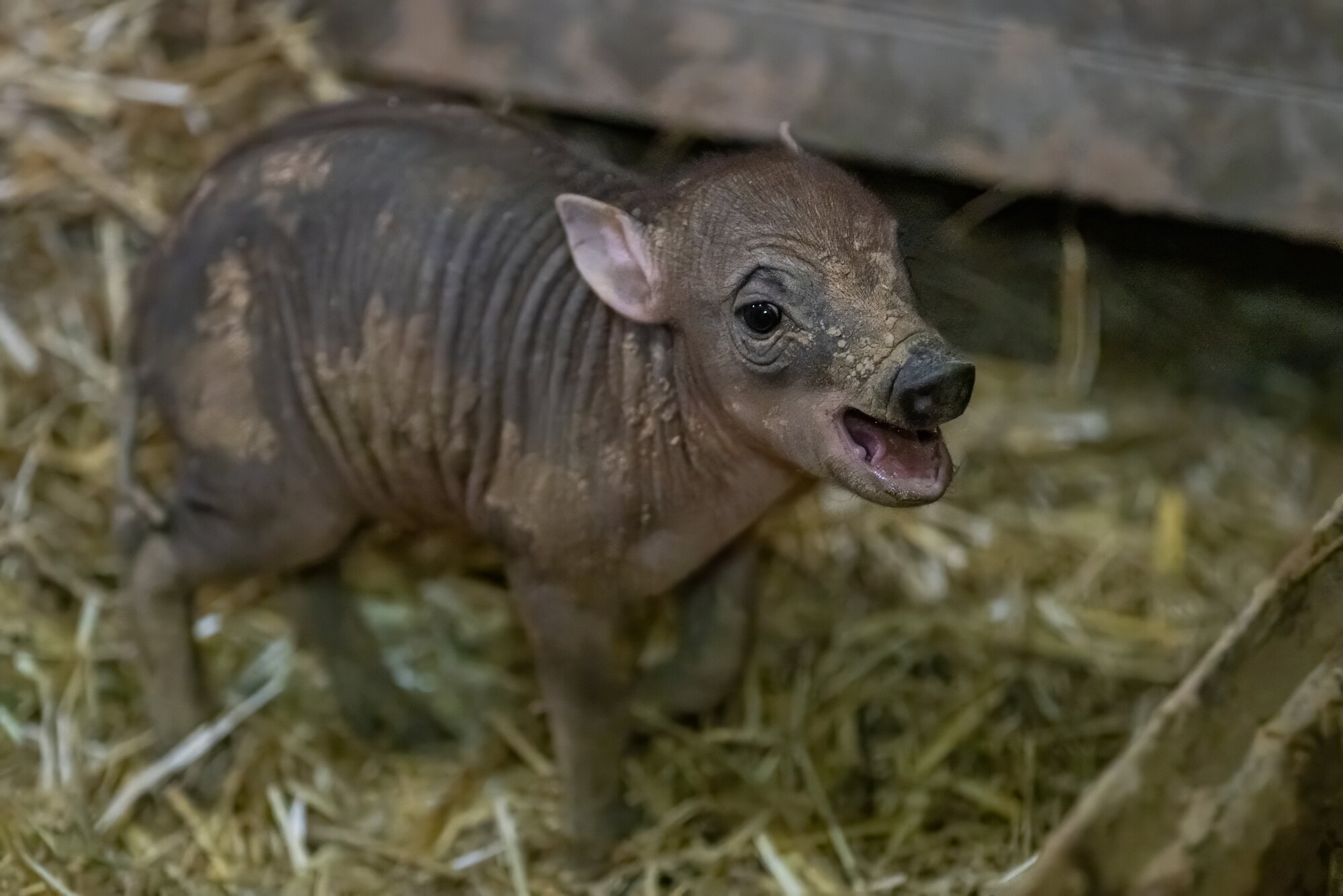 With their hairless bodies and giant curved tusks that penetrate the top of the snout and grow up towards the forehead, babirusas could easily be taken for some kind of magical creature from the Fantastic Beasts film seriesif you couldn’t see them in the flesh at Tierpark Berlin. These curious swine may even have served as part of the inspiration for the mythical Qilin, which is said to bring harmony and happiness. And it was certainly a happy day for Tierpark Berlin when baby babirusa Ambari (a name meaning “sky”) was born here on 18 September.