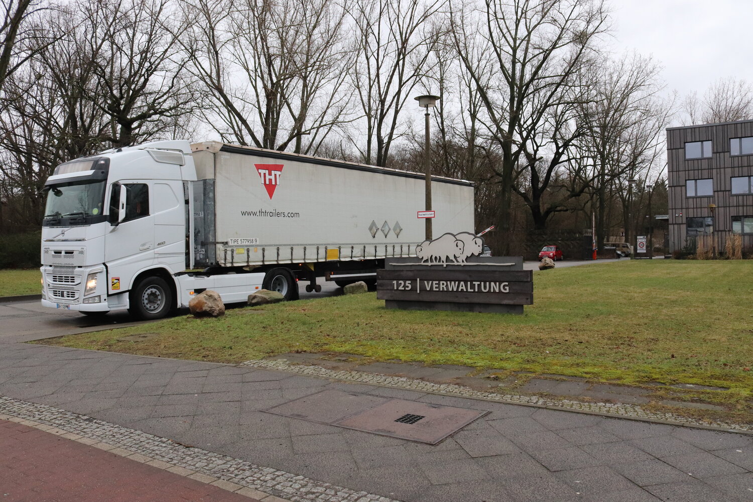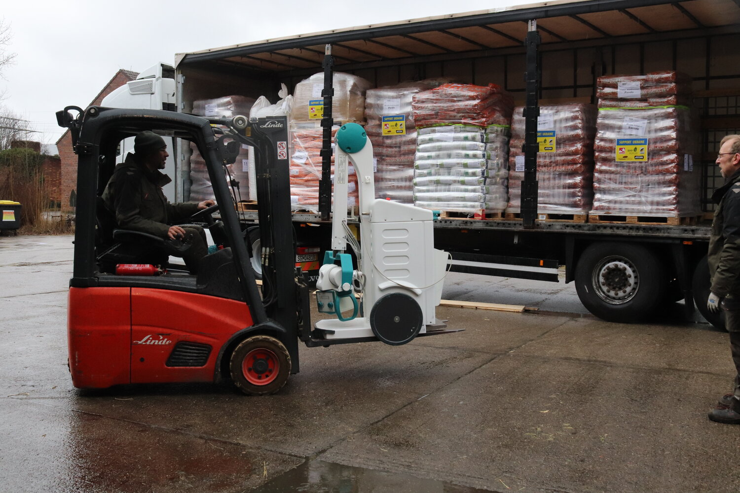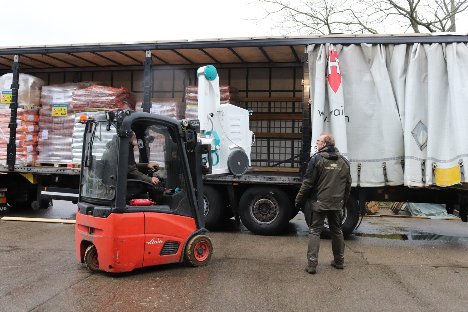 Zoo and Tierpark Berlin remain in close contact with their colleagues in Ukraine and are supplying Kyiv Zoo with urgently needed items. Two trucks carrying over 25 tonnes of dry feed for various animals including giraffes, elephants, rhinoceroses and birds left the Tierpark today, headed for the Ukrainian capital. Also on board was a mobile X-ray machine. The relief initiative was supported by Schönbrunn Zoo in Vienna and Alpenzoo Innsbruck. A generous contribution was also made by intipa GmbH, the company that supplies feed to Berlin’s zoological gardens. “We want to thank everyone who continues to support us during these difficult times,” says Kyrylo Trantin, the director of Kyiv Zoo. “Almost every week animals are sent to us from the front line of the war. Their condition is often critical and they require all the assistance we can give, so external aid and donations are still urgently needed.” Trantin explains that, especially during the winter, it is crucial that damaged animal accommodation be repaired as quickly as possible in order to protect the animals from the cold. For this, regular supplies of plywood are required.